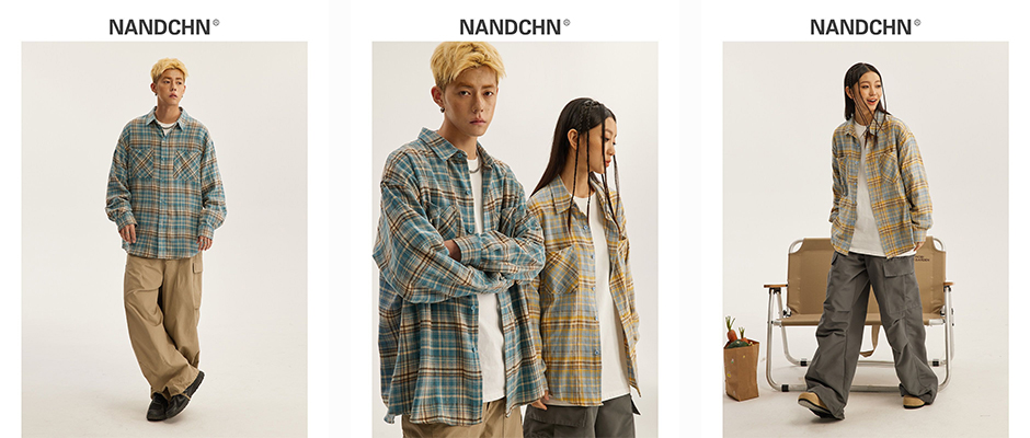 男道复古撞色格纹长袖衬衫男女春秋潮牌宽松休闲情侣工装衬衣外套