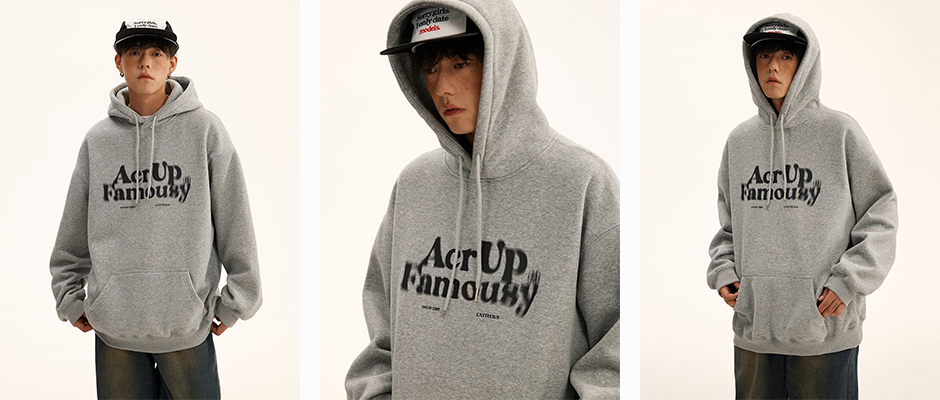 男道秋冬重磅模糊字母连帽印花卫衣男士美式宽松显瘦高街加绒上衣