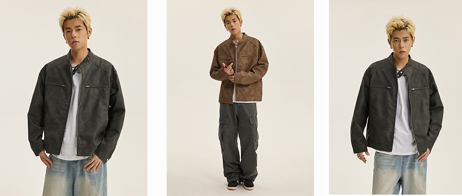 男道美式街头机车皮衣夹克男24秋季新款痞帅宽松休闲翻领外套上衣