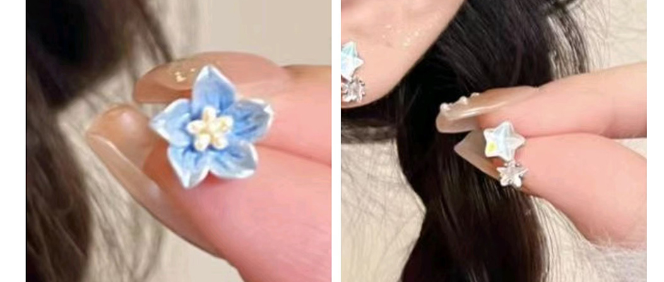 主图5普鲁士蓝山茶 春夏新款花朵耳钉小巧精致甜美气质耳环无耳洞耳夹