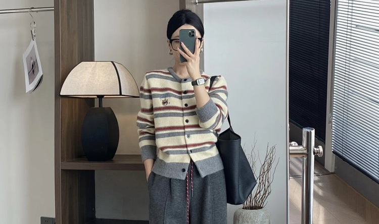 撞色条纹开衫