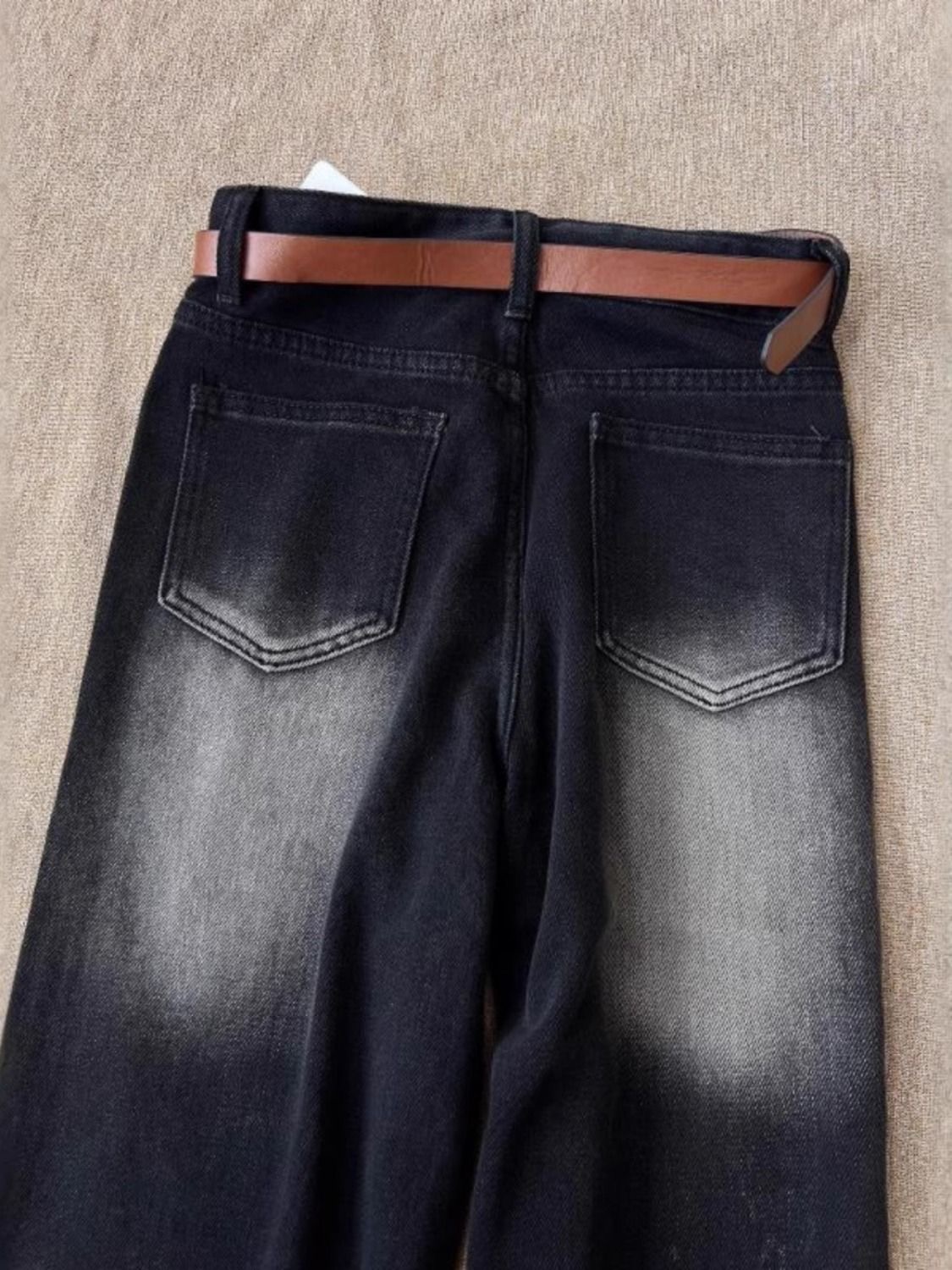 水洗黑色直筒牛仔裤女秋季新款梨形身材高腰宽松显瘦百搭阔腿裤子