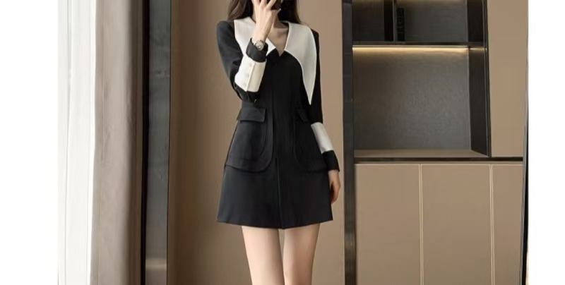 小香风裙子高端气质娃娃领长袖连衣裙早秋冬女小个子