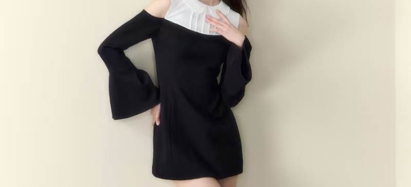 甜辣妹纯欲穿搭学院风露肩长袖收腰连衣裙女显瘦秋冬季a字裙