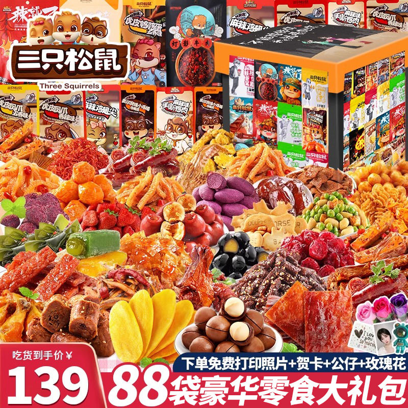 三只松鼠巨型零食大礼包送女友整箱儿童生日礼物辣卤小吃休闲食品