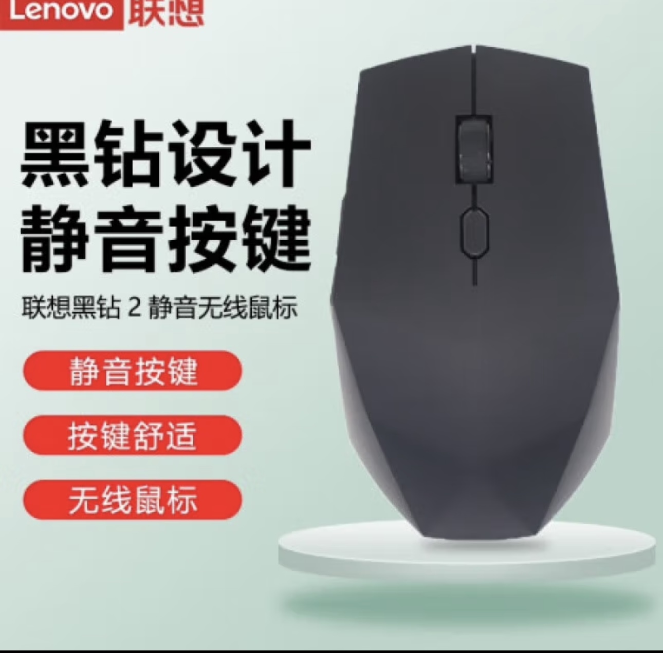 联想 黑钻2 原装无线鼠标 男女生适用于电脑通用鼠标家用办公游戏鼠标 黑色 静音无线鼠标