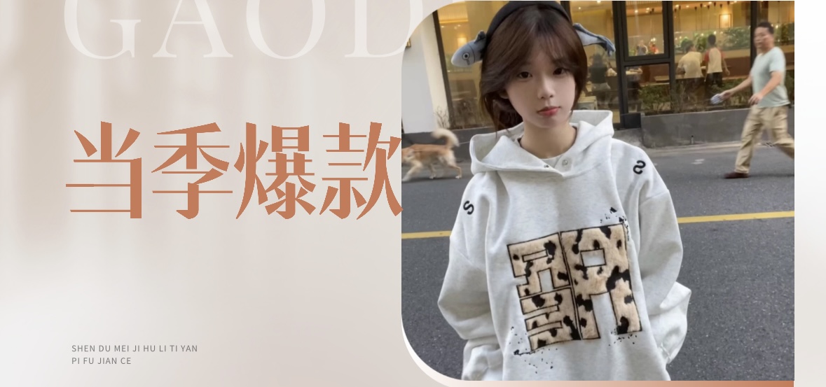 美式复古刺绣植绒连帽卫衣女宽松加绒加厚2024新款爆款秋冬季帽衫