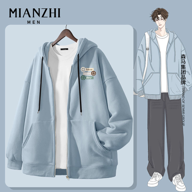 棉致拉链卫衣男2024年新款秋季潮流男装宽松开衫外套