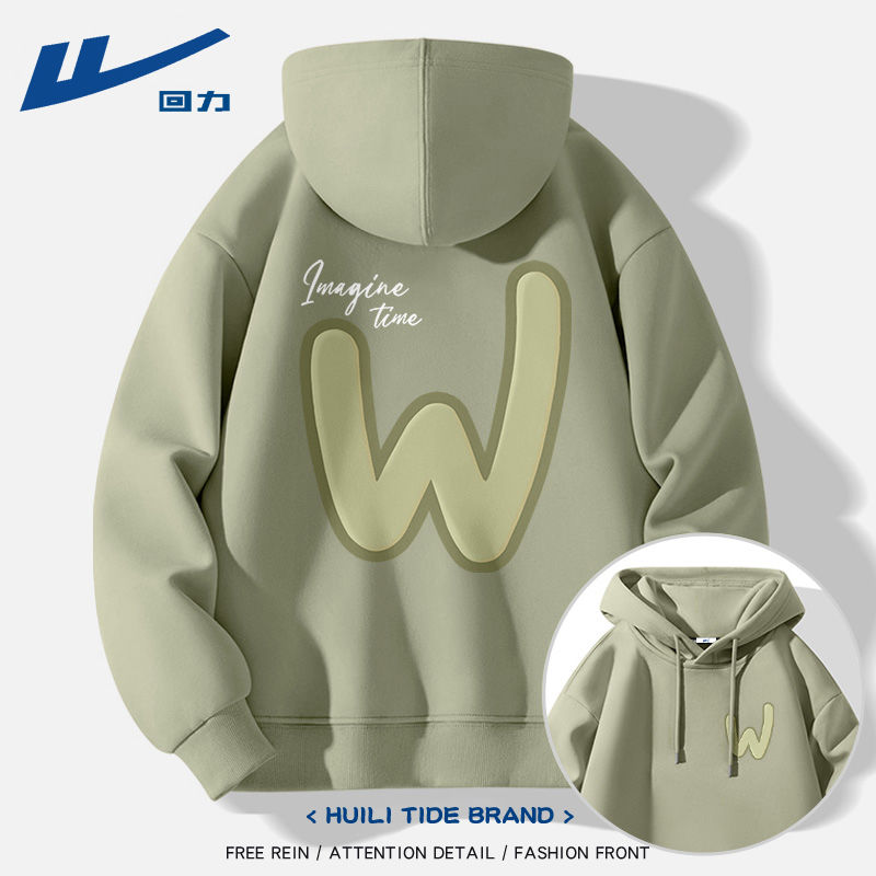 回力加绒连帽卫衣男2024秋冬款ins潮牌印花宽松休闲复古重磅男装