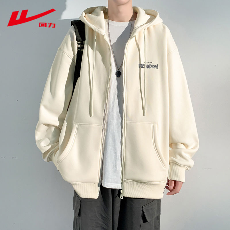 回力潮牌连帽卫衣男秋冬季2024新款美式vintage宽松拉链开衫外套
