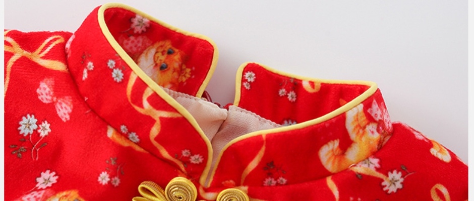 天静童装2021年冬季新款女童连衣裙 中国红萌虎儿童公主礼服裙