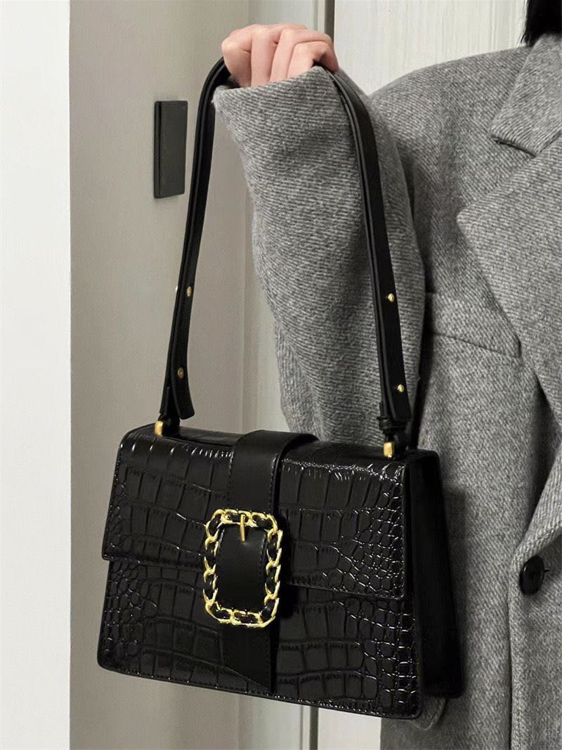 鳄鱼纹黑金包 大容量学院风高级感通勤单肩斜挎包2023秋