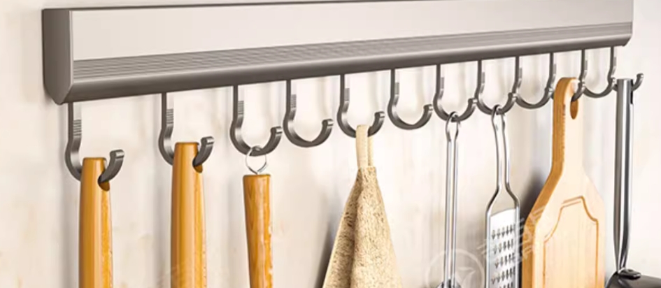 枪灰色免打孔厨房挂钩架挂杆壁挂多功能厨具挂架勺子铲子置物架