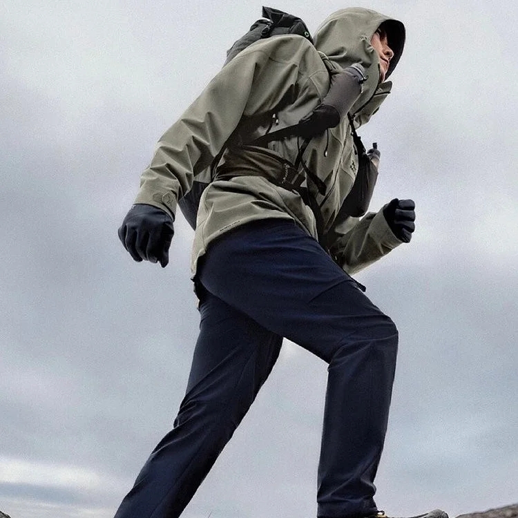 冲锋裤防水男士休闲裤秋冬季2024新款加绒美式宽松直筒能工装裤子