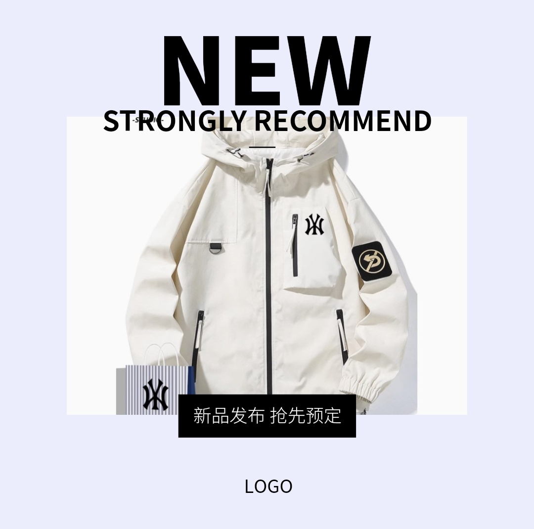 奥莱联名春季连帽冲锋衣男士宽松百搭工装夹克青少年防风防寒外套