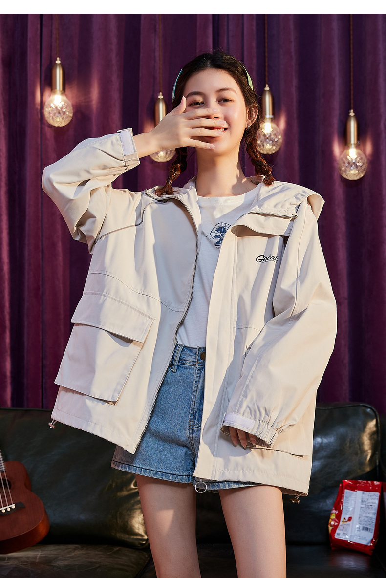 春秋新款连帽百搭外套女 石膏白