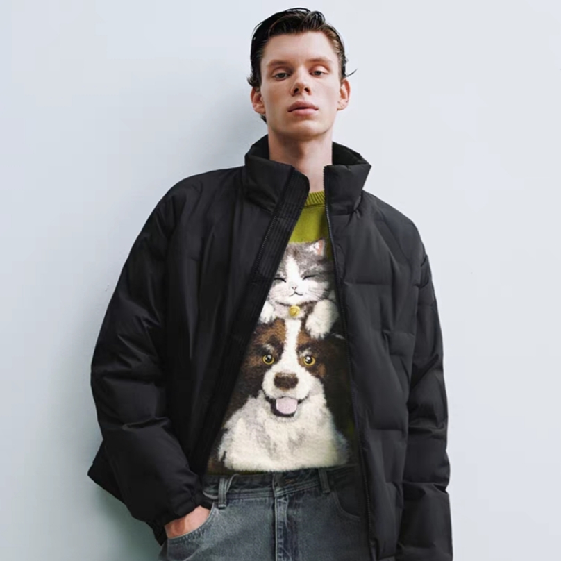 UR2025冬新款男装趣味休闲萌宠图案圆领针织衫情侣毛衣