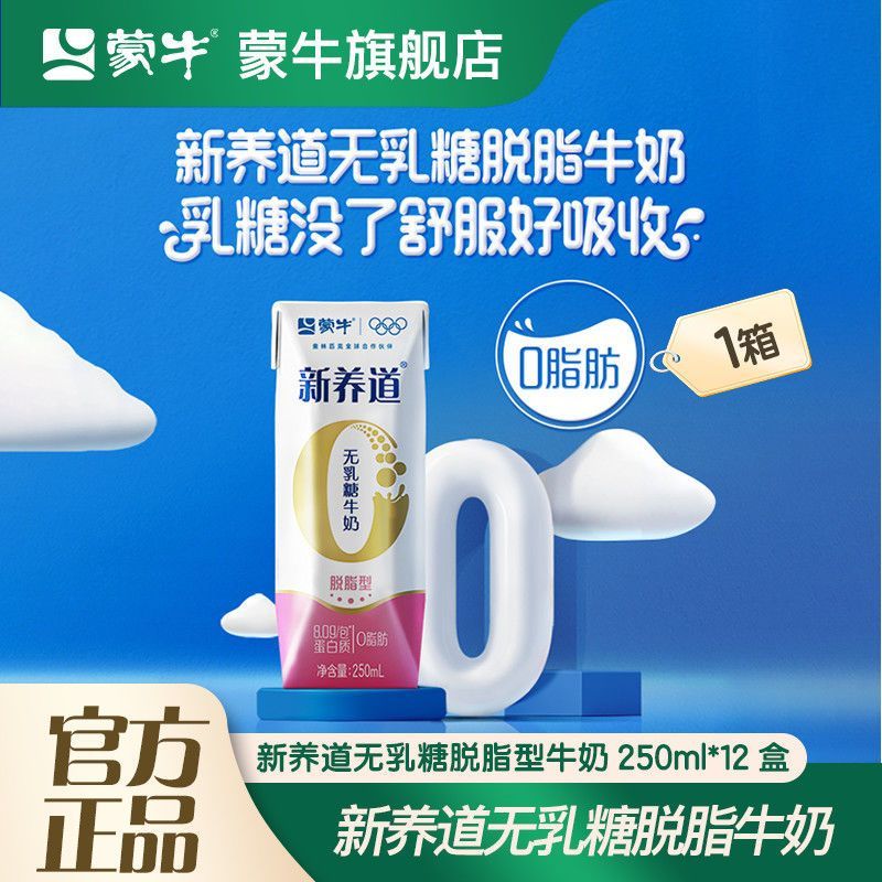 9月 蒙牛新养道无乳糖脱脂型牛奶250ml*12盒 脱脂奶囤货送礼整箱