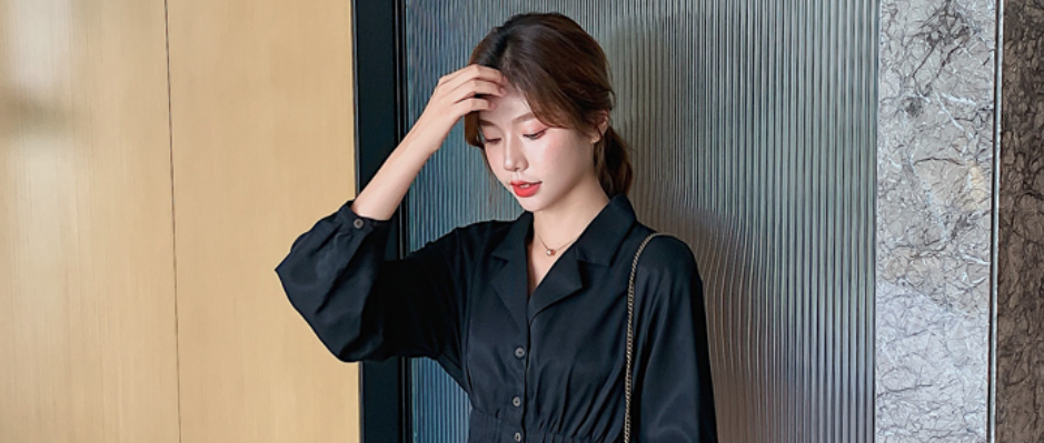 秋装2020年新款女长袖连衣裙衬衫式酒红色收腰显瘦气质过膝长裙子