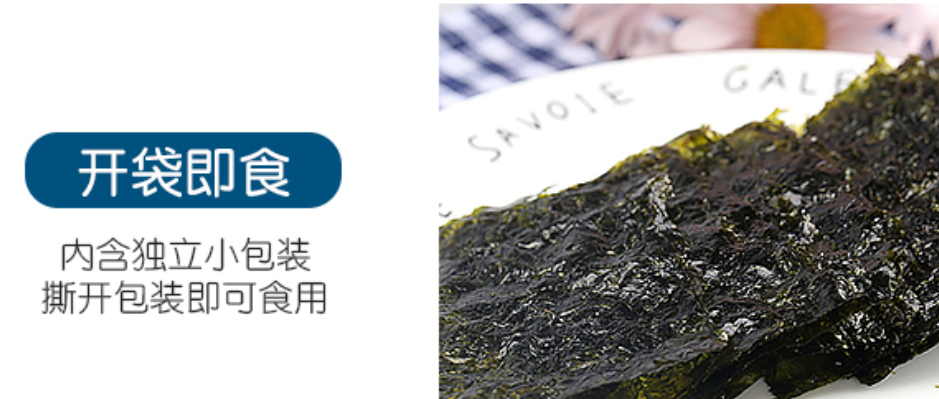 鲜嫩的韩国海苔,天然食材无添加,有机加工食品认证,低盐配方。