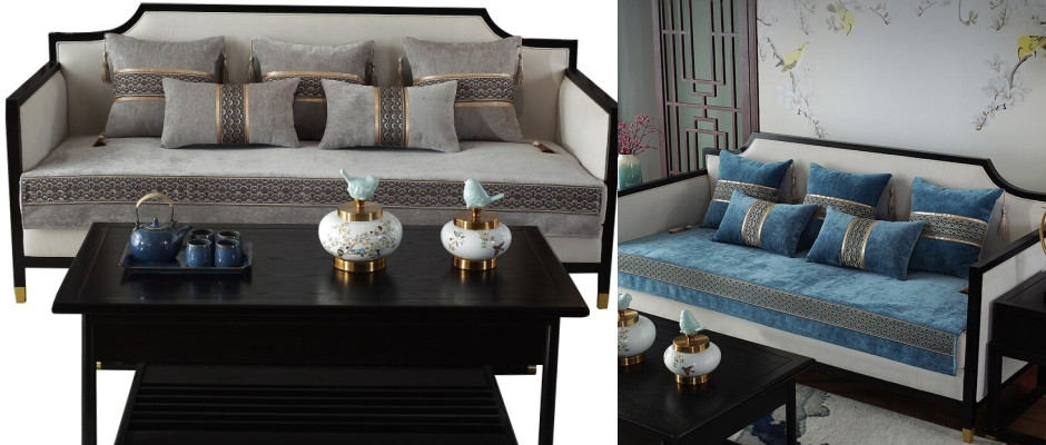 新中式四季通用沙发垫布艺防滑老式坐垫子123红木实木套巾罩定做