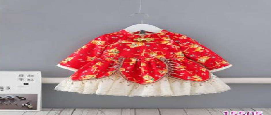 天静童装2021年冬季新款女童连衣裙 中国红萌虎儿童公主礼服裙