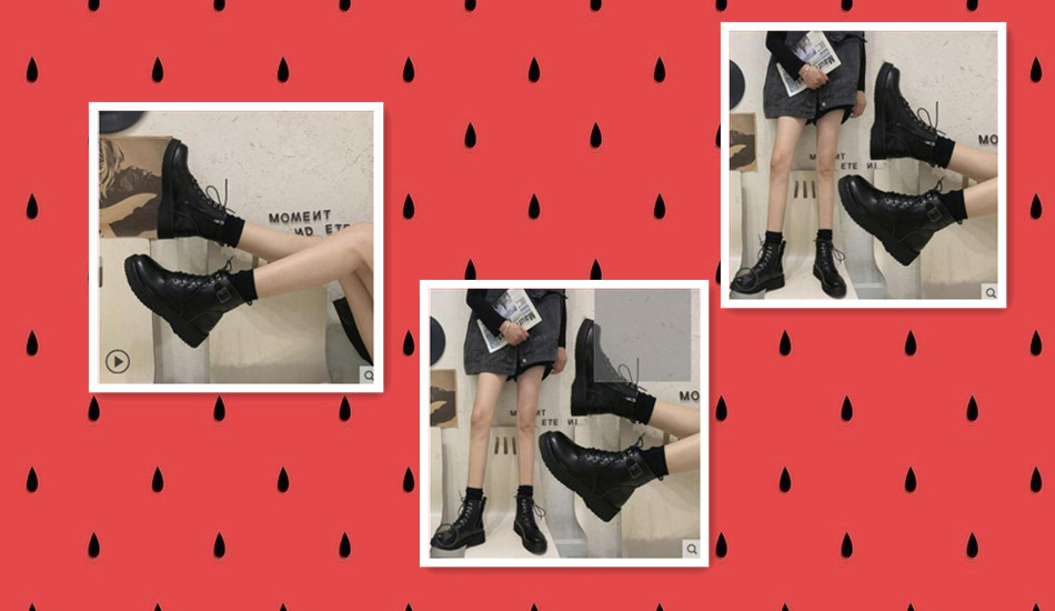 2020新款秋冬季高帮鞋女潮鞋加绒百搭靴子女鞋马丁靴短靴休闲鞋子