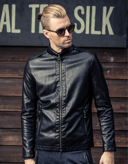 英爵伦 男装加绒皮衣立领修身机车外套 韩版修身简约短款PU皮夹克