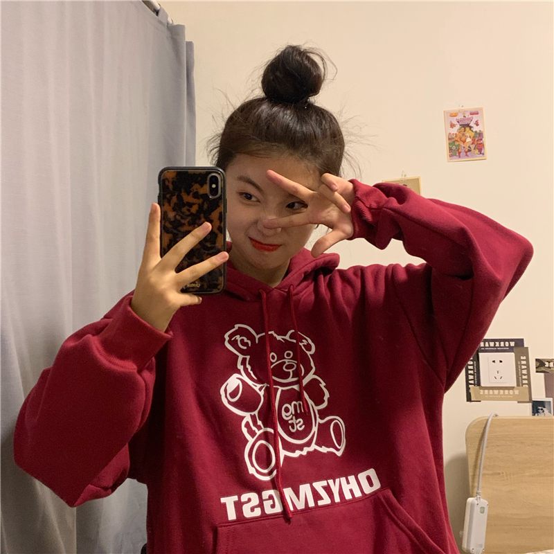 卡通熊连帽卫衣女