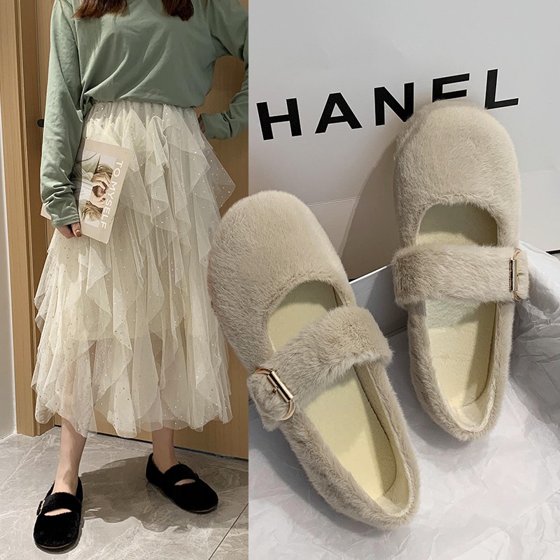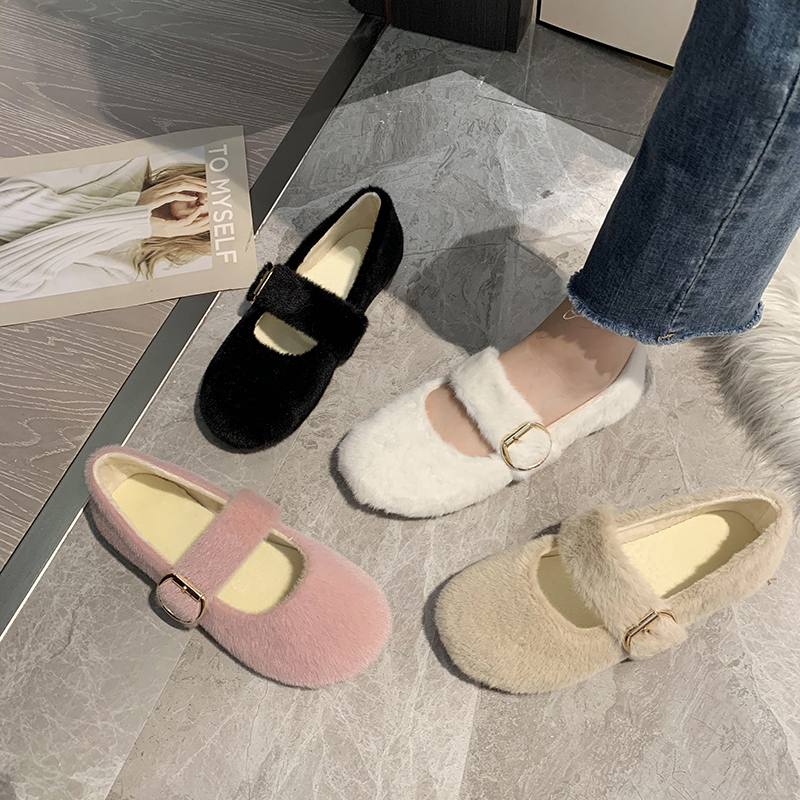 秋冬女网红女鞋豆豆鞋毛绒单鞋百搭可爱加绒时尚