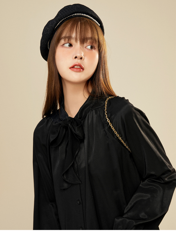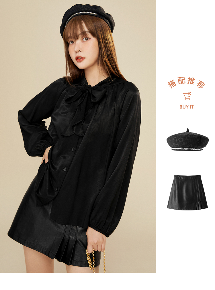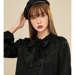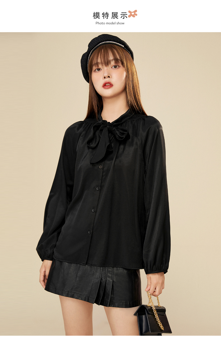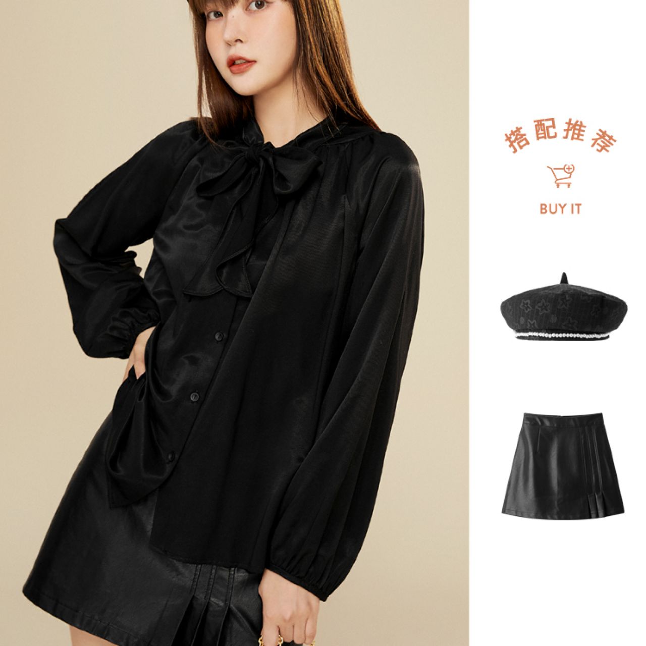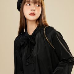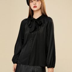 【新品】乐町雪纺女上衣2020秋季新款时尚潮流女装气质系带上衣