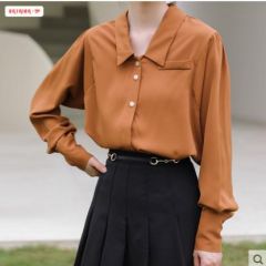 复古港味港风上衣长袖雪纺衬衫女设计感小众洋气,时尚,新品布料