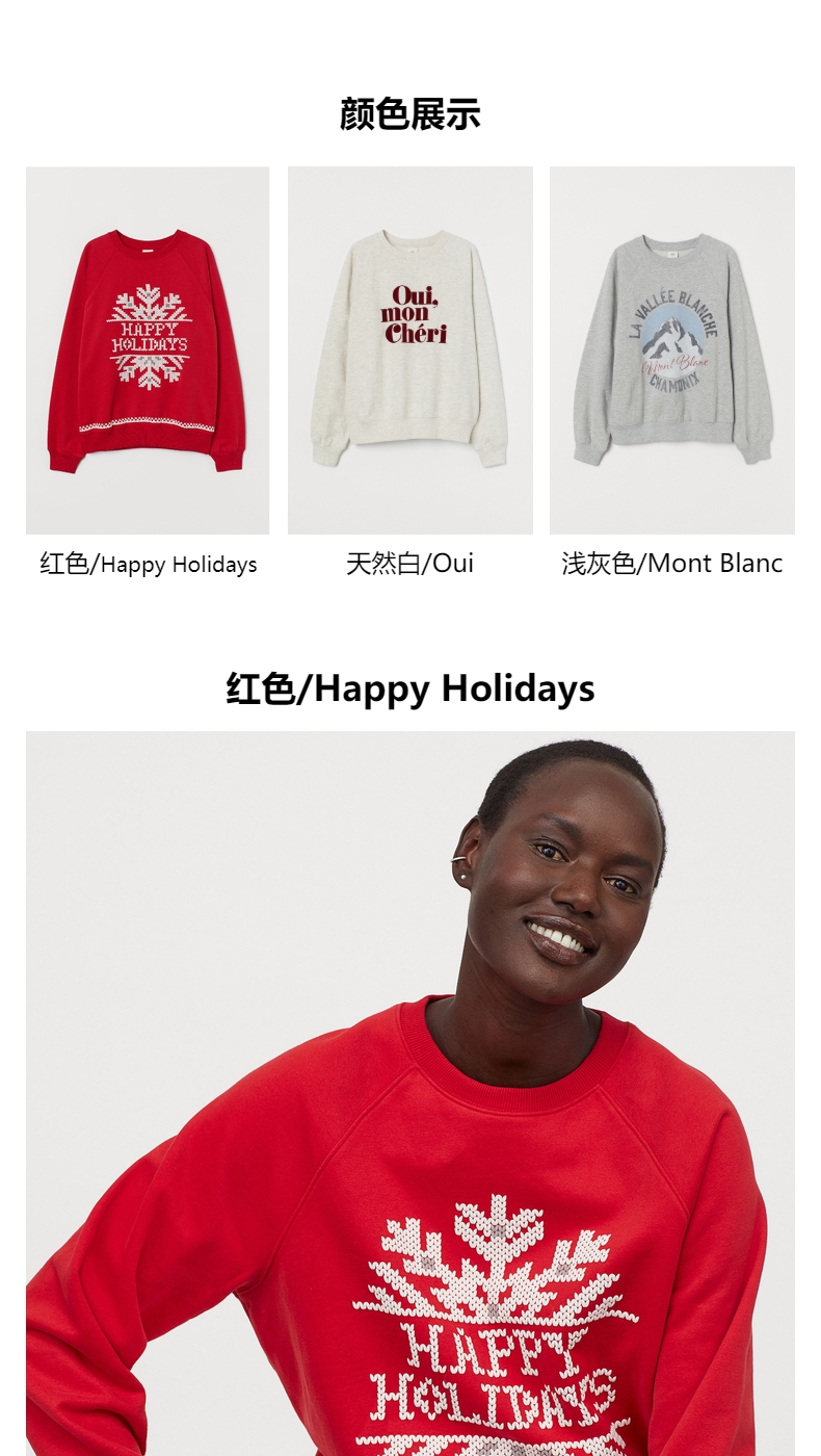品牌: H&M 颜色分类: 红色/Happy Holidays