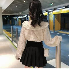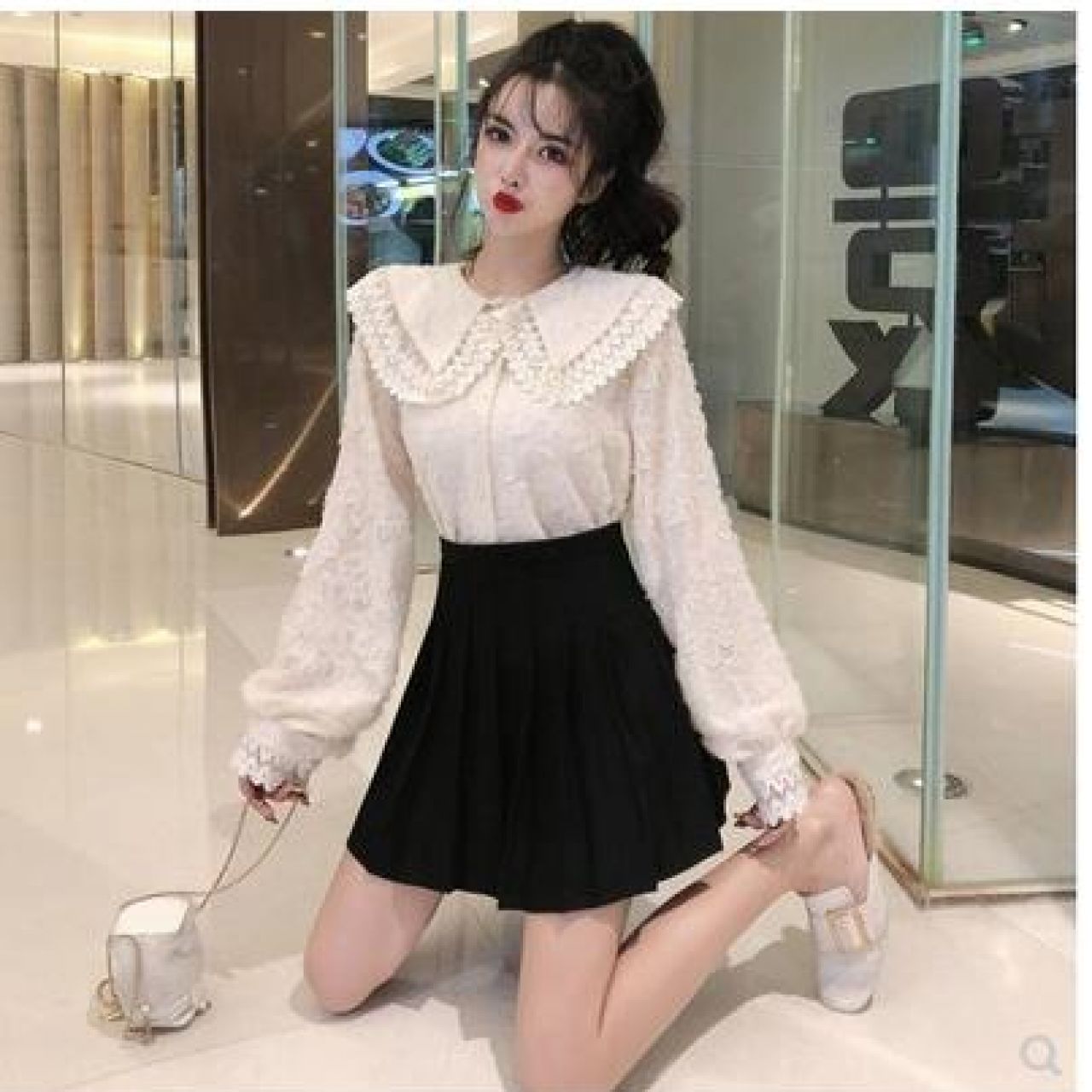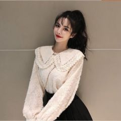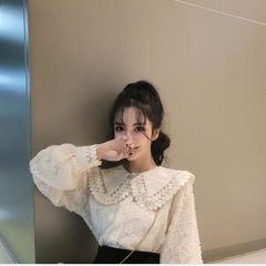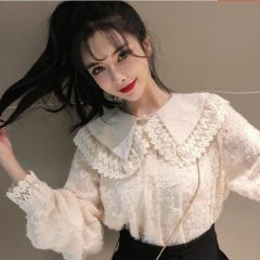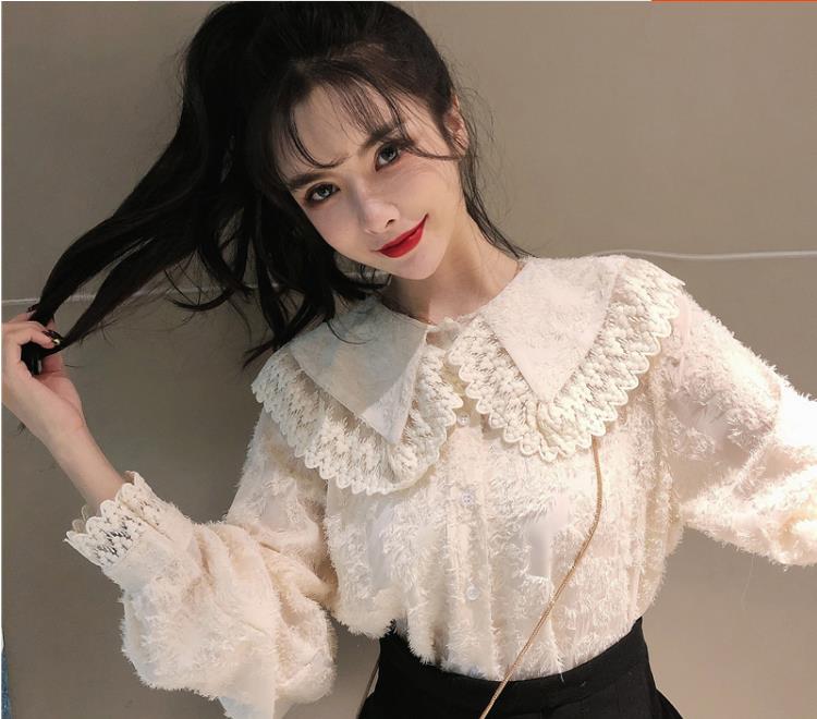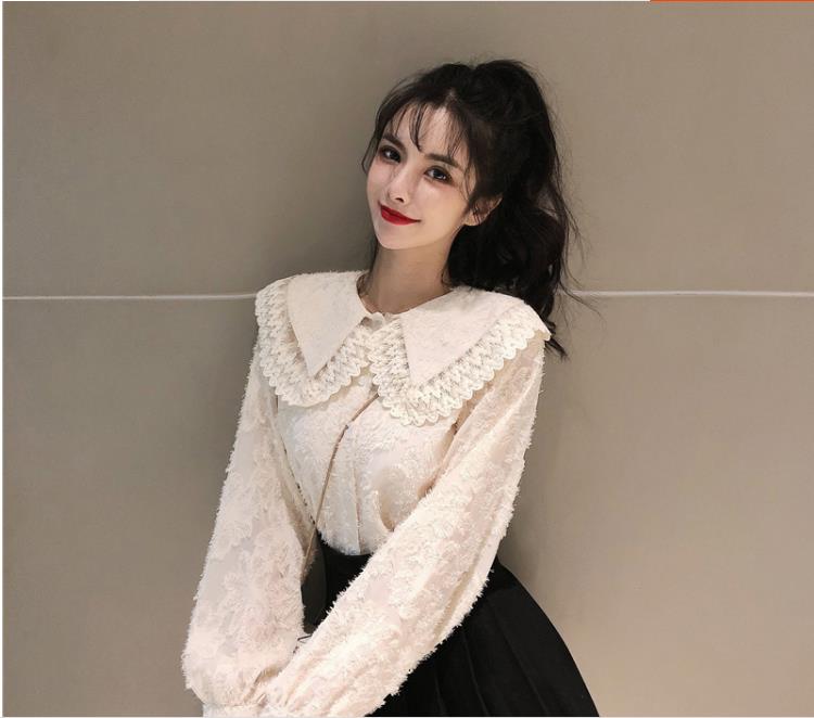 韩版洋气蕾丝边娃娃领提花雪纺衫女2020秋装新款宽松打底长袖上衣