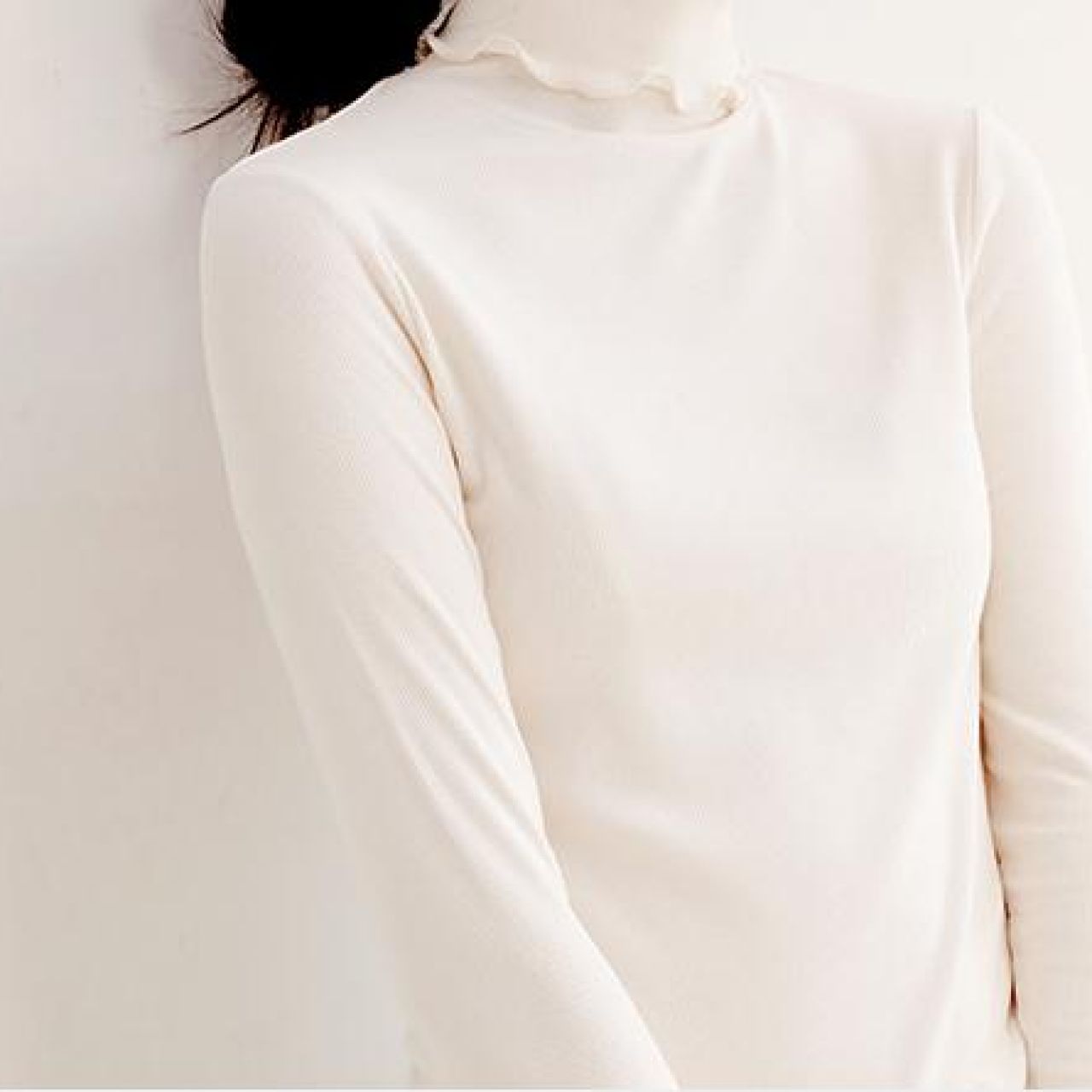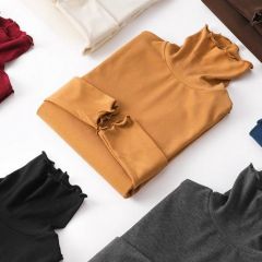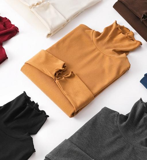 桑蚕丝木耳边长袖打底衫女加绒2020秋冬保暖内搭发热修身黑色上衣