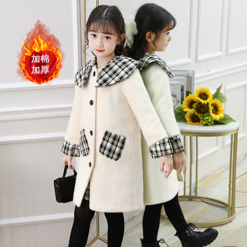 女童毛呢外套2020秋冬新款童装韩版女孩洋气长款儿童呢子大衣夹棉