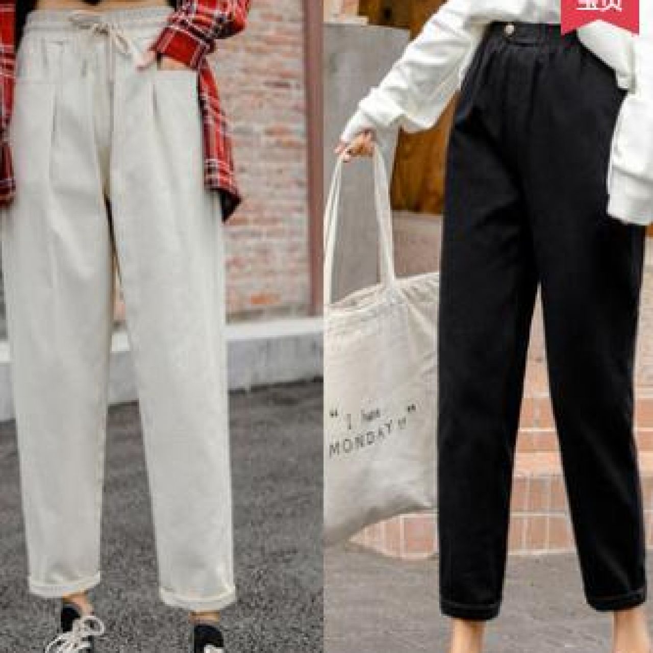 毛呢裤子女秋冬季2020新款高腰显瘦萝卜奶奶裤宽松直筒休闲哈伦裤
