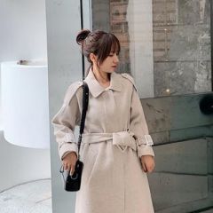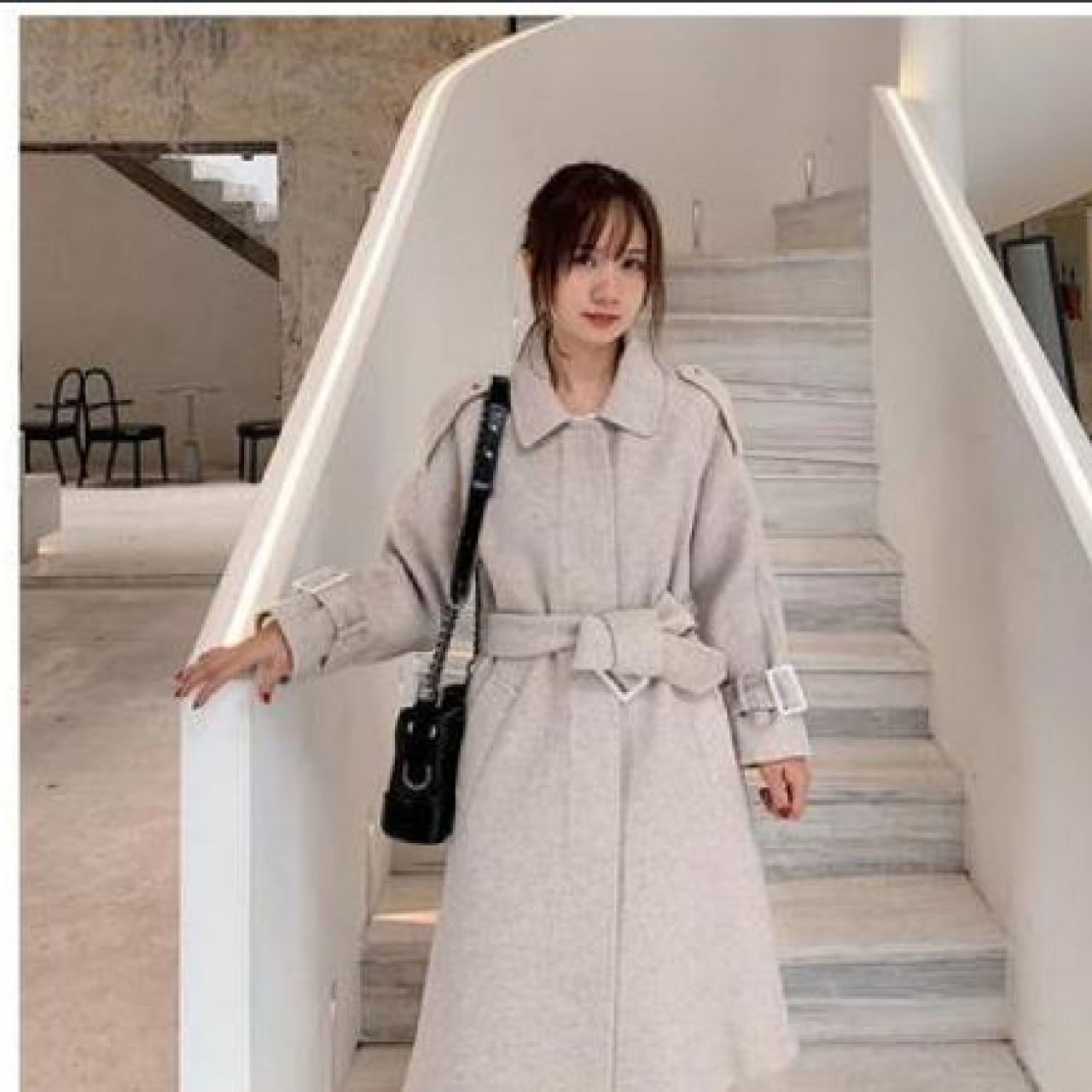 专柜正品Amii赫本风毛双面呢子大衣女冬季黑色收腰长款毛呢外套11