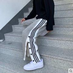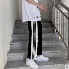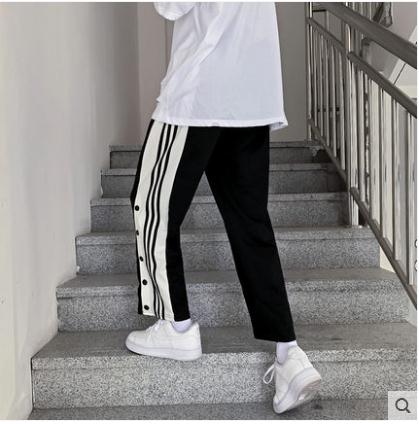 秋冬加绒裤子男港风排扣直筒运动裤韩版潮流宽松百搭阔腿休闲长裤