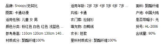 史努比儿童羽绒服男童外套女童冬装宝宝童装2020新款中大童加厚潮