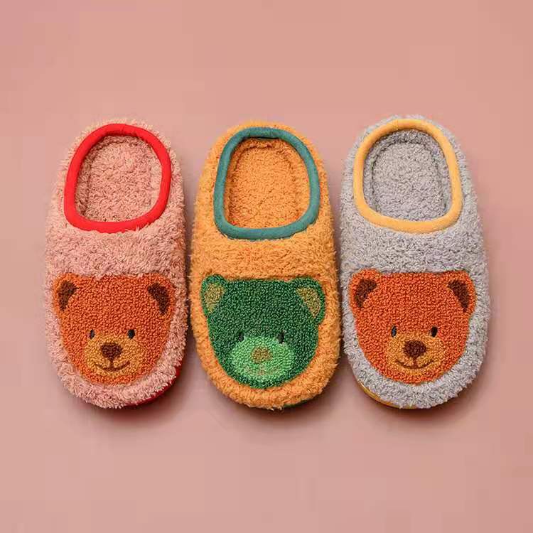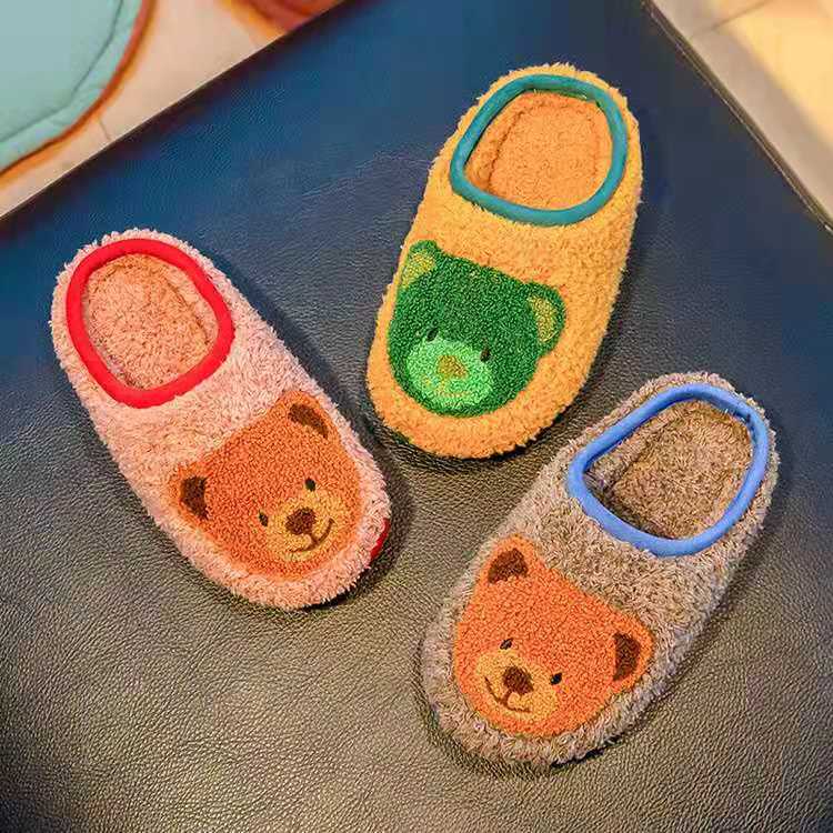 儿童棉拖鞋包跟秋冬季可爱室内家居防滑宝宝棉鞋男童女童毛毛拖鞋 灰色