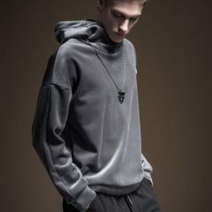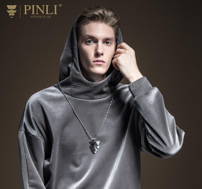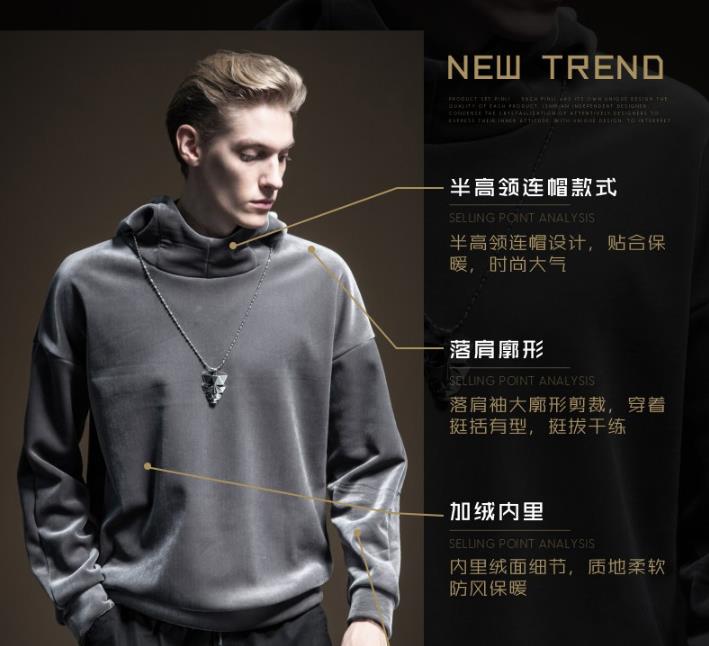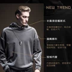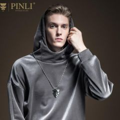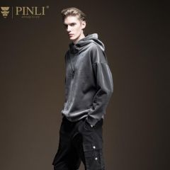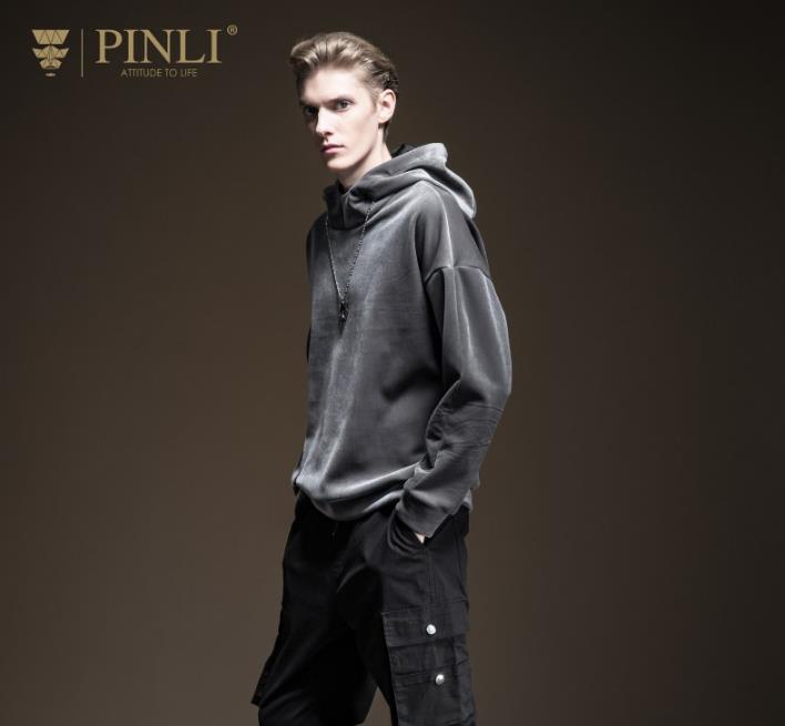 PINLI品立秋季新款男装加绒加厚丝绒连帽套头卫衣B193509251