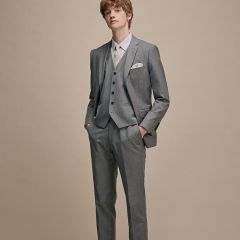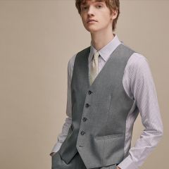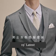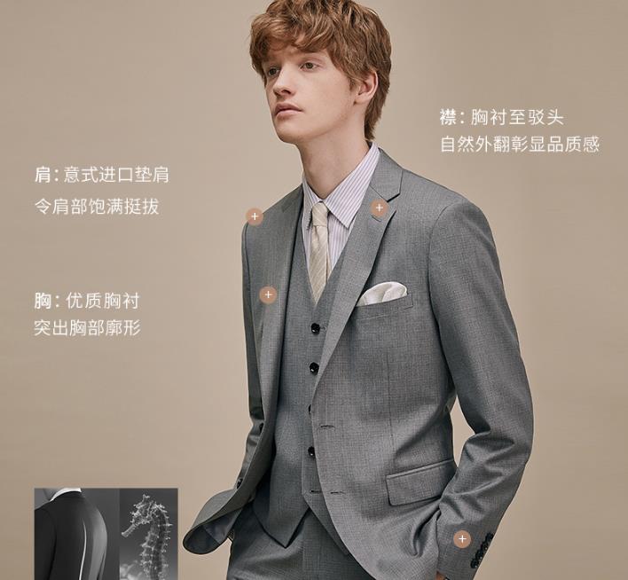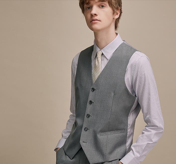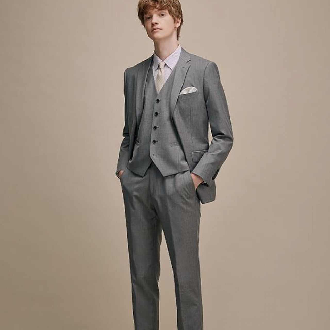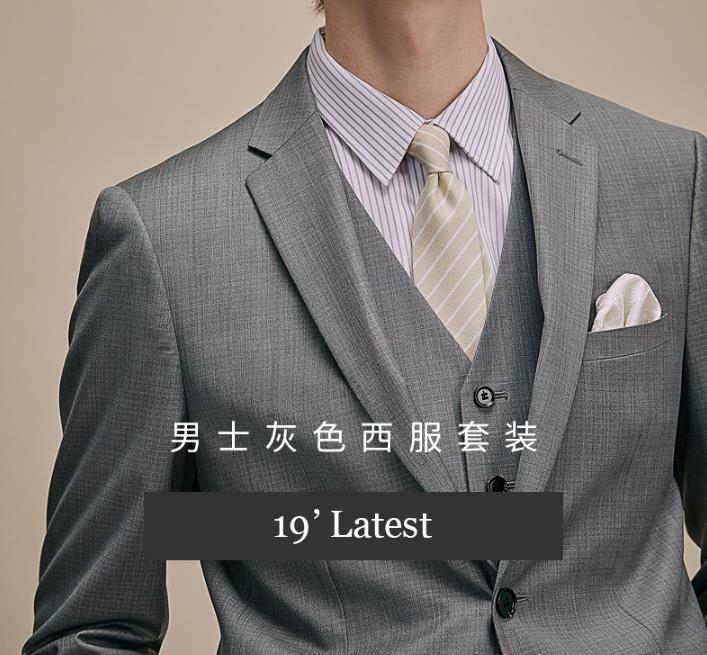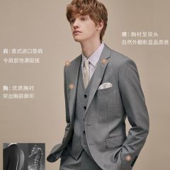 男士灰色羊毛西服套装定制正装新郎结婚礼服三件套修身休闲西装男