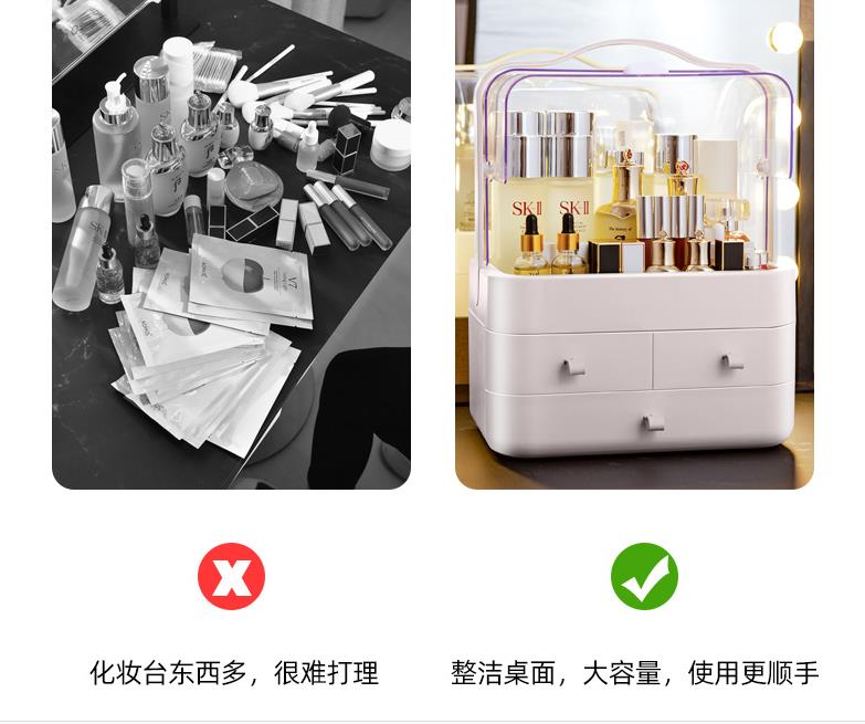 网红化妆品收纳盒抽屉式防尘置物架桌面整理盒护肤品梳妆台收纳架