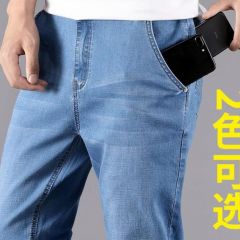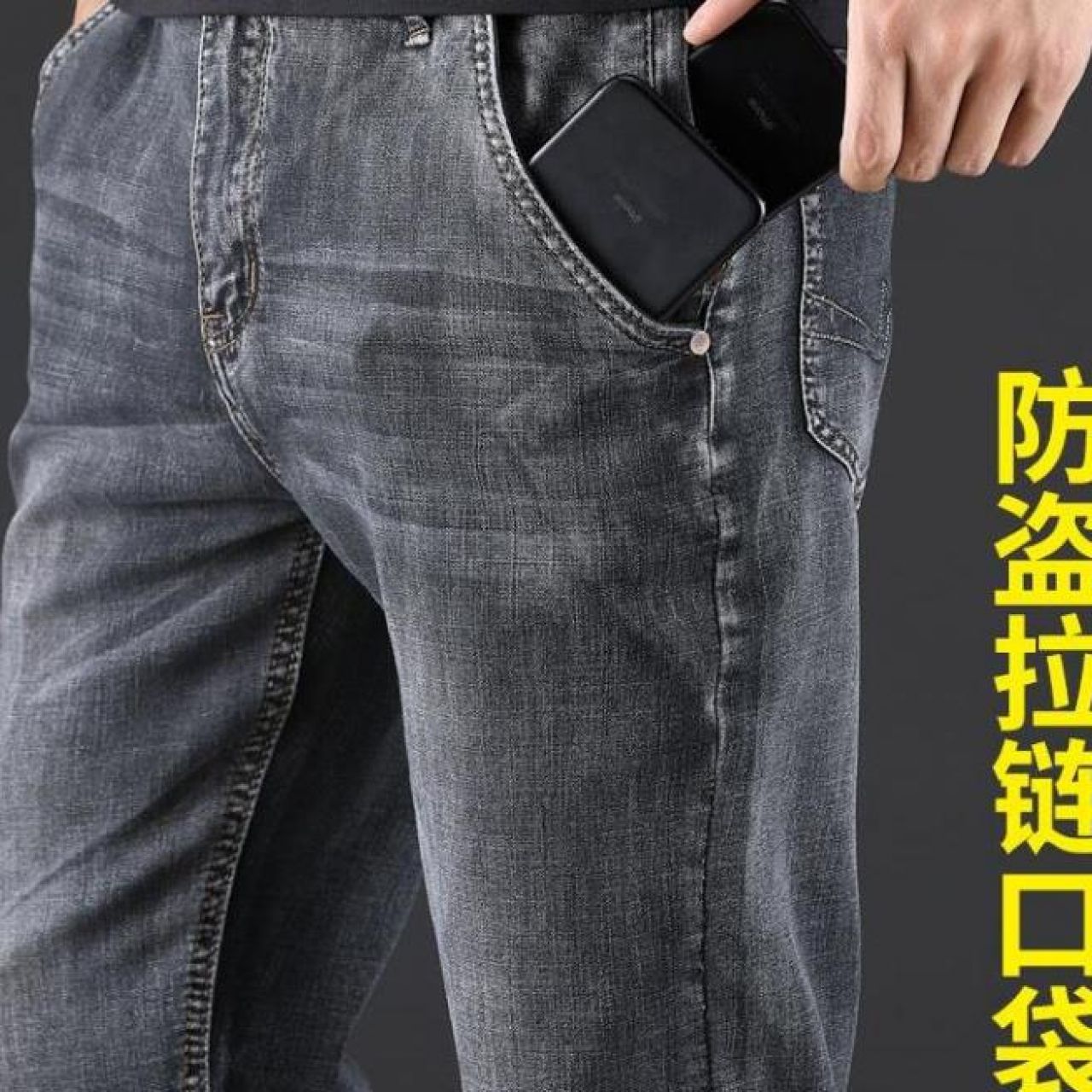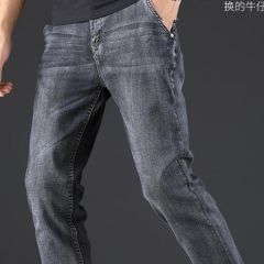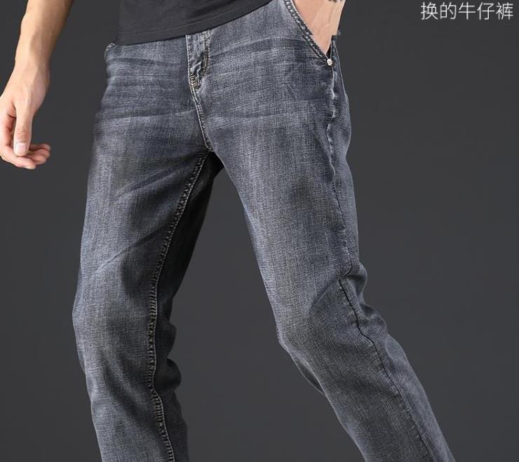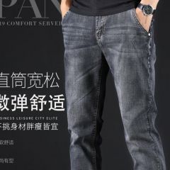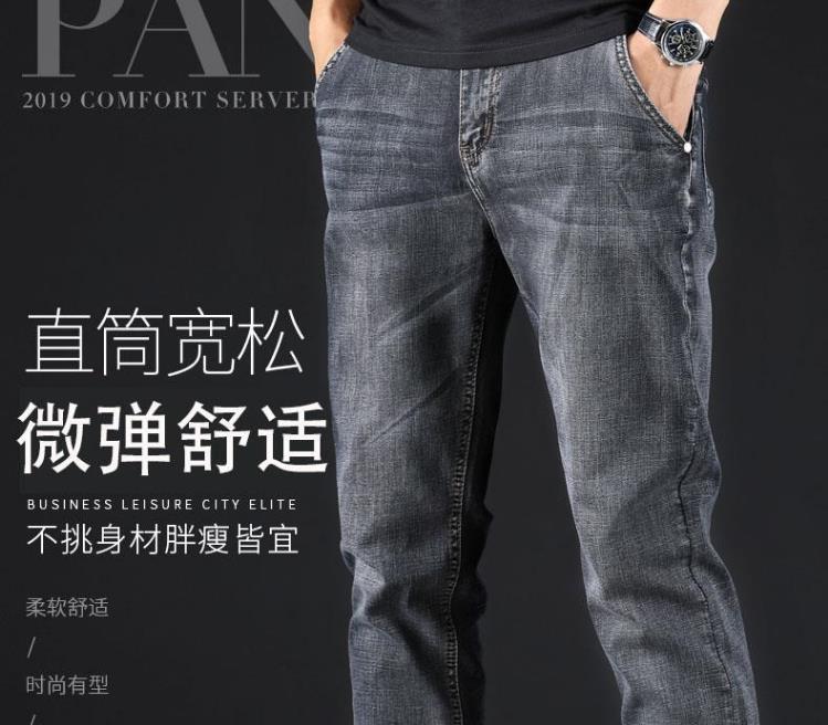JEANS秋季烟灰色牛仔裤男士直筒宽松秋冬款高端中年休闲加绒裤子