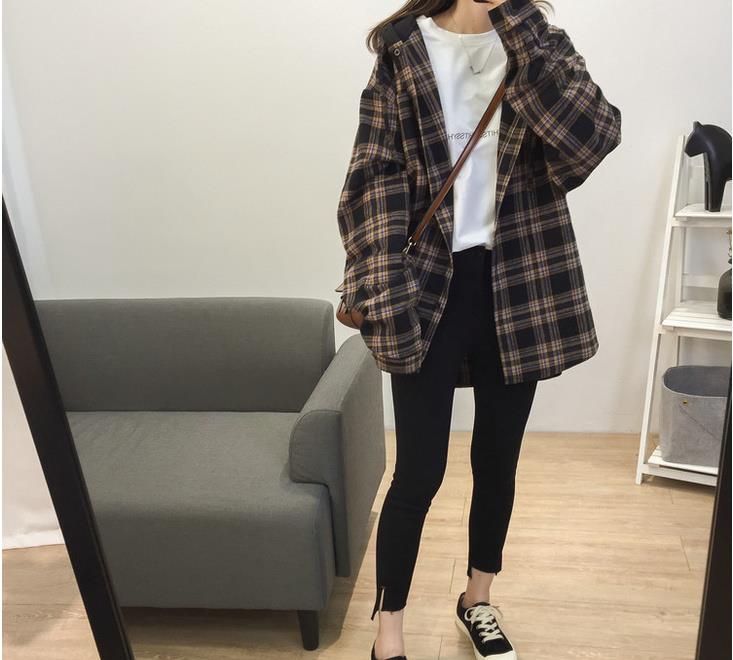 加绒加厚格子女士衬衫长袖秋冬2020新款季叠穿打底一体绒保暖衬衣