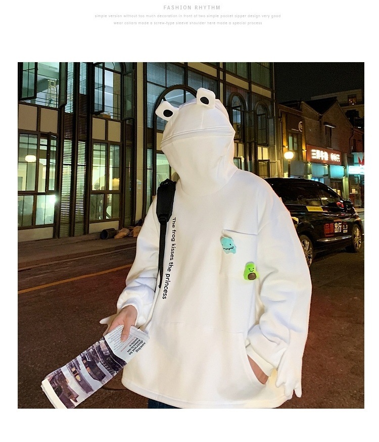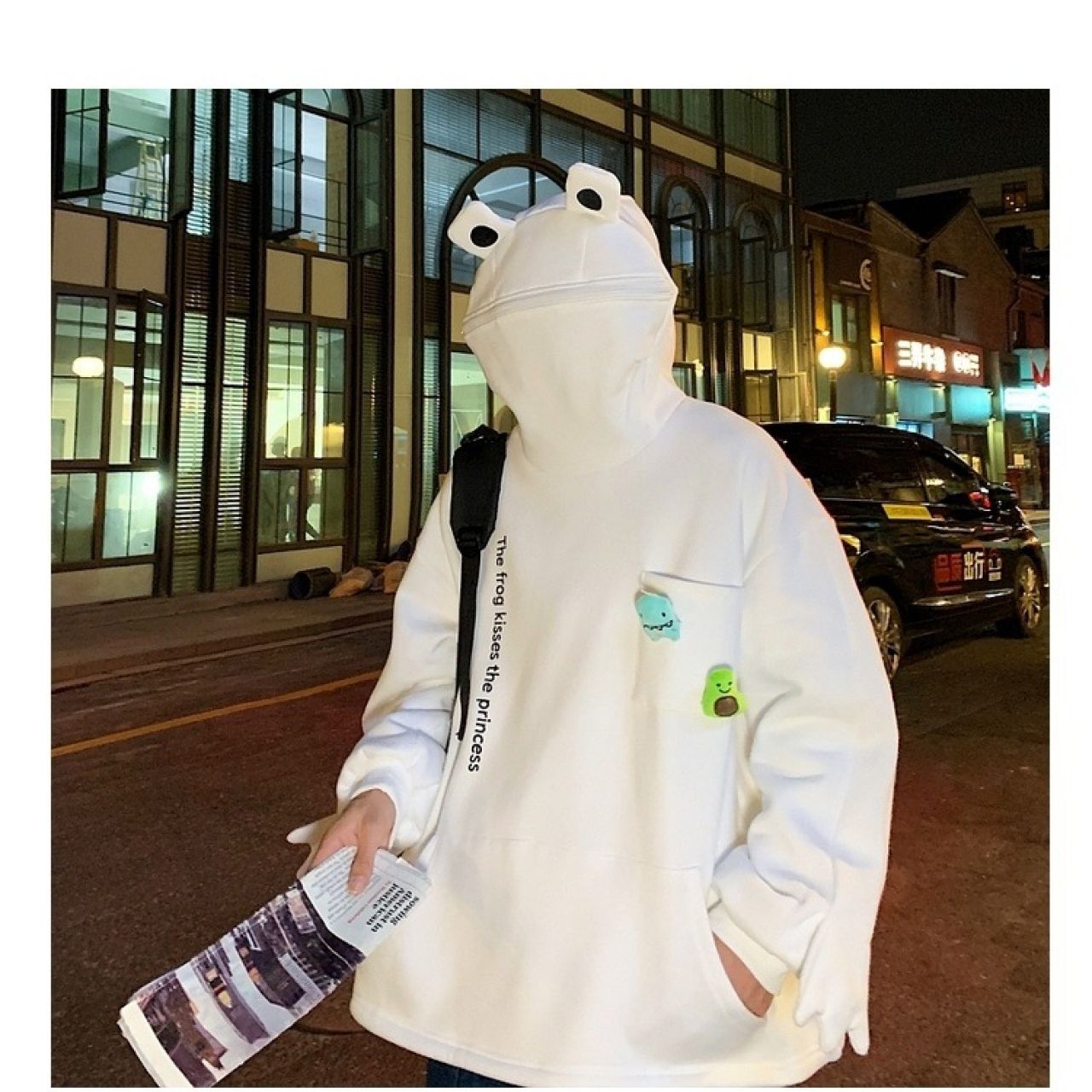 旋律风车青蛙套头卫衣男士设计感连帽休闲外套秋冬季潮流宽松上衣
