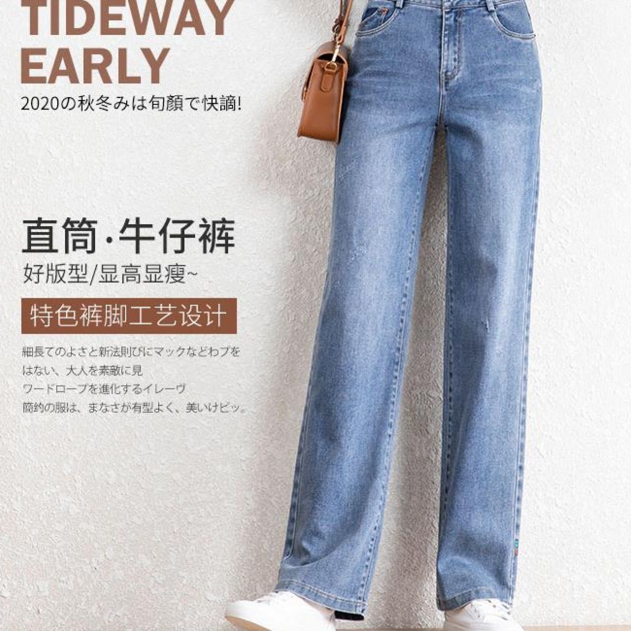 直筒牛仔裤女2020秋季新款高腰宽松显瘦百搭显高休闲阔腿牛仔长裤