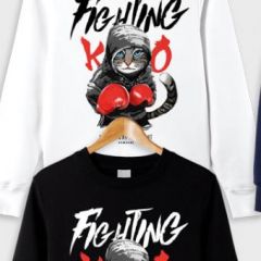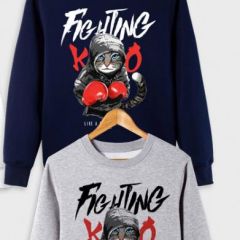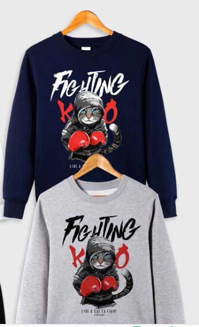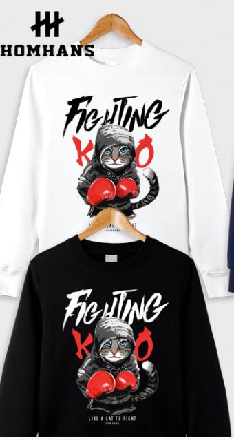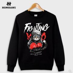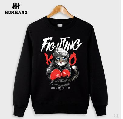 香港百搭潮牌拳击小猫圆领卫衣男宽松日系卡通印花大码情侣外套