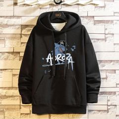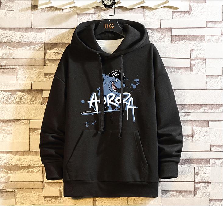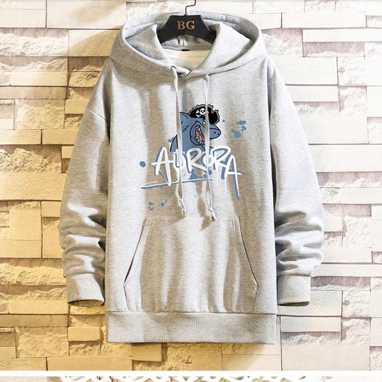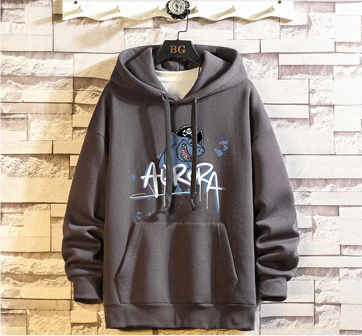 男士加绒连帽卫衣胖子宽松加肥加大码潮流韩版卡通印花休闲套头衫